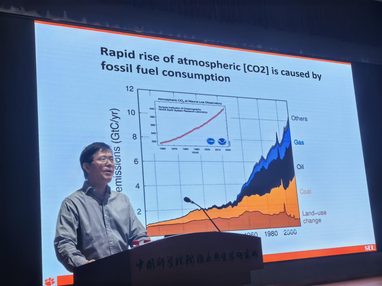 隨后,王高峰教授以 “Thoughts on Forestry as Natural Climate Solutions”為題作引領報告。圍繞 “自然氣候解決方案(NCS)為何成為生態(tài)研究熱點”“NCS 的核心內(nèi)涵”“森林碳庫與碳匯的關鍵概念”“碳智慧型木材采伐利用的 NCS 新策略” 四大維度展開深入闡釋。深入淺出地闡述了自然氣候解決方案主要依靠增加森林的碳匯,目前幾乎所有研究都聚集于增加森林生態(tài)系統(tǒng)的碳儲量,但這不是唯一也不是最好的增匯途徑。碳智慧木材采伐利用可以在森林生態(tài)系統(tǒng)外創(chuàng)造更安全,更永久碳匯。為未來林業(yè)科學研究提供新思路和新視角。