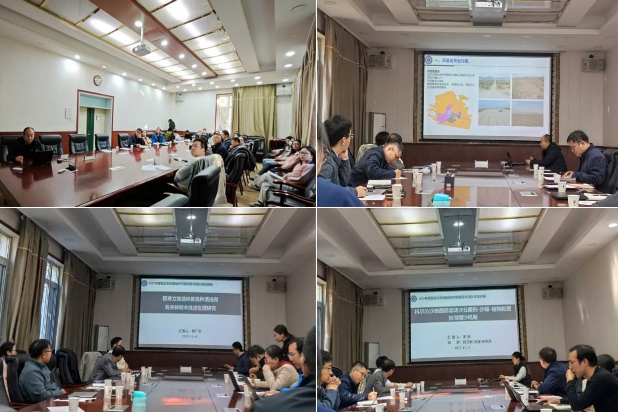 王思遠(yuǎn)助理研究員介紹了翁牛特旗烏丹鎮(zhèn)示范區(qū)建設(shè)情況。該區(qū)域?yàn)榈湫透珊?、風(fēng)沙嚴(yán)重的困難立地,自2025年春季起開展灌木、草本與喬木多樹種混交配置,并結(jié)合沙障工程形成多密度、多層次空間格局。鄭曉研究員基于水資源、溫度、土壤養(yǎng)分及鹽分等關(guān)鍵約束因子,初步構(gòu)建了北方困難立地等級(jí)劃分體系,完成宜林區(qū)范圍劃定,并計(jì)劃開展土壤有機(jī)質(zhì)與鹽分遙感反演,為適地適樹提供依據(jù)。高添研究員圍繞多源近地面數(shù)據(jù)采集,完成了固沙植被紋理與三維重建,初步構(gòu)建困難立地?cái)?shù)字孿生體,并將融合生長(zhǎng)、水分與防風(fēng)固沙模型,實(shí)現(xiàn)生態(tài)效益預(yù)測(cè)與智能管理。王揚(yáng)博士生匯報(bào)科爾沁沙地流動(dòng)沙丘菌劑試驗(yàn)進(jìn)展,明確溶磷解鉀菌、叢枝菌根菌、固氮菌劑及生物炭對(duì)固沙植物的促進(jìn)作用,下一步將開展栽植試驗(yàn)與長(zhǎng)期監(jiān)測(cè),推動(dòng)協(xié)同固沙模式示范應(yīng)用。宋立寧研究員團(tuán)隊(duì)提出“四位一體”植被構(gòu)建框架,建立樟子松—白榆混交樣地,推薦灌:草:?jiǎn)?= 3:5:2 的配置比例,為生態(tài)修復(fù)提供參考。郝廣友研究員團(tuán)隊(duì)分析樹木在干旱、低溫等脅迫下的生理生態(tài)響應(yīng)及關(guān)鍵抗逆指標(biāo),強(qiáng)調(diào)林分密度調(diào)控對(duì)恢復(fù)力提升的重要性,并計(jì)劃建立北方困難立地重點(diǎn)造林樹種功能性狀數(shù)據(jù)庫(kù)。葉吉副研究員提出“菌根共生驅(qū)動(dòng)的樹種共存理論”,布設(shè)草—灌—喬復(fù)合配置試驗(yàn)區(qū),并將擴(kuò)大樹種組合試驗(yàn)和微生物驅(qū)動(dòng)的植被恢復(fù)監(jiān)測(cè)。楊衛(wèi)兵研究員構(gòu)建了根尖動(dòng)態(tài)追蹤系統(tǒng),初步解析了根尖干細(xì)胞對(duì)水分及土壤環(huán)境脅迫的分子響應(yīng),為耐逆樹種培育提供突破口。劉玥助理研究員和馬志遠(yuǎn)助理研究員分別介紹了微生物—水分互作機(jī)制及合成菌群在土壤改良和逆境緩釋中的應(yīng)用,為提升土壤穩(wěn)態(tài)和植被恢復(fù)力提供科學(xué)支撐。項(xiàng)目成員之間就喬灌草比例科學(xué)構(gòu)建、近自然植被構(gòu)建模式(圍繞地帶性植被-疏林草地)、典型示范區(qū)打造、數(shù)字化困難立地植被構(gòu)建模擬平臺(tái)建設(shè)、深根植物培育、合成菌群研發(fā)與應(yīng)用等進(jìn)行了激烈的交流與討論。李顯玉正高級(jí)工程師對(duì)項(xiàng)目的示范區(qū)建設(shè)以及喬灌草科學(xué)比例構(gòu)建等技術(shù)提出了寶貴的指導(dǎo)性意見,為項(xiàng)目的下一步計(jì)劃奠定了良好的基礎(chǔ)。