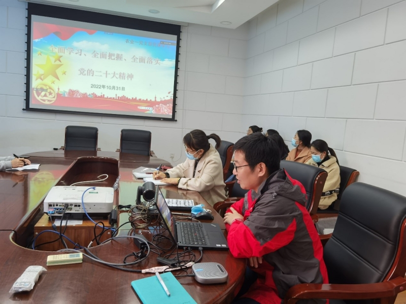 為學(xué)習(xí)貫徹習(xí)近平總書記在中國(guó)共產(chǎn)黨第二十次全國(guó)代表大會(huì)上的報(bào)告精神,根據(jù)所黨委部署要求,10月31日,沈陽(yáng)生態(tài)所農(nóng)業(yè)中心第一黨支部在第二會(huì)議室組織專題黨課報(bào)告會(huì),黨委委員、農(nóng)業(yè)中心主任呂曉濤研究員作“全面學(xué)習(xí)、全面把握、全面落實(shí)黨的二十大精神”專題黨課報(bào)告。30余名黨員線上線下參加了會(huì)議。會(huì)議由黨支部書記張麗莉研究員主持。